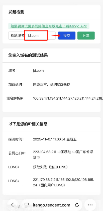 获取客户端IP,ldns,域名请求ip,请求耗时