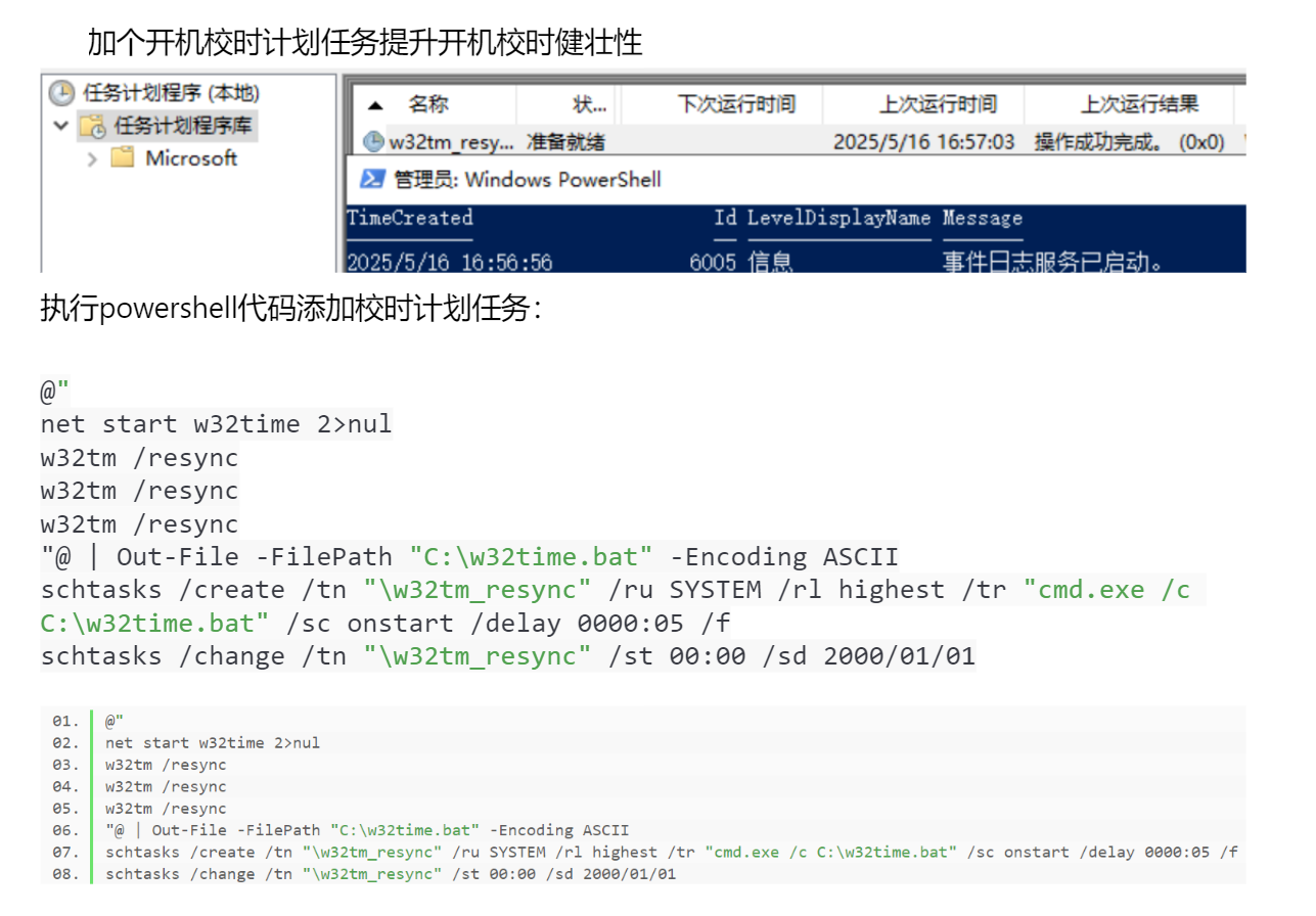schtasks /change /tn "\w32tm_resync" /st 00:00 /sd 2000/01/01原创声明:本文系作者授权腾讯云开发者社区发表,未经许可,不得转载。
