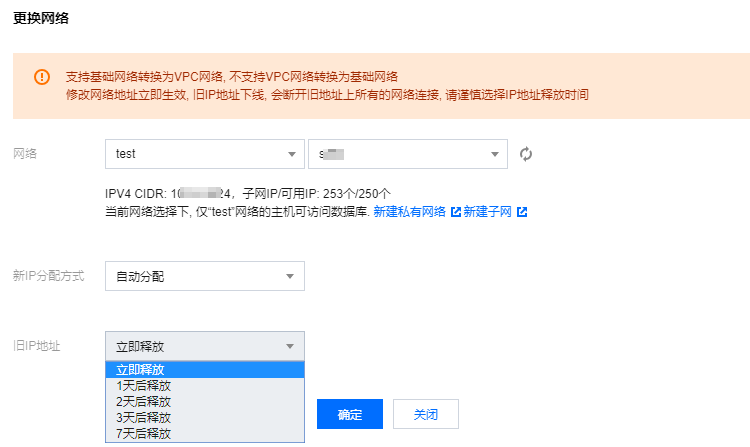 数据库切换实例网络,并不会产品额外的费用。