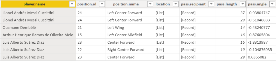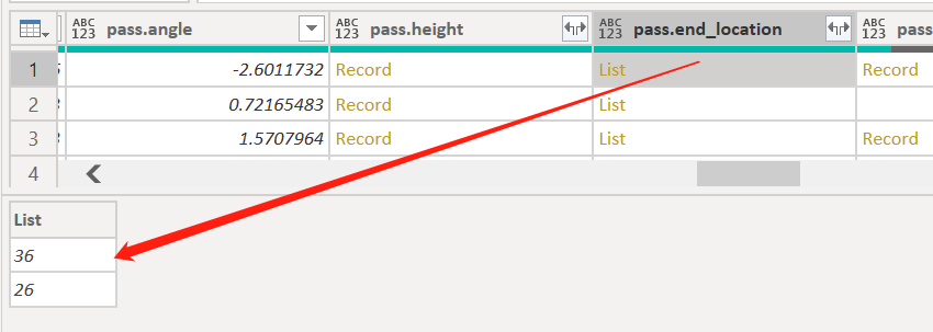 如果是List,比如下方的传球终点坐标,预览得知XY坐标纵向排列,此时不能直接展开,展开会导致其他数据重复。