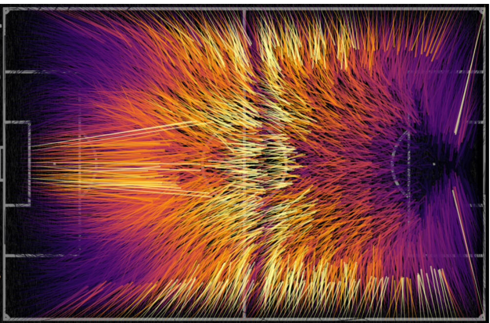 有网友针对数据中的传球流向有个有趣的可视化,混乱中见秩序: