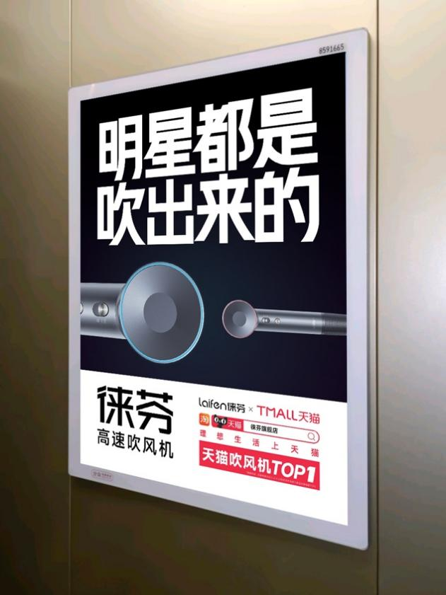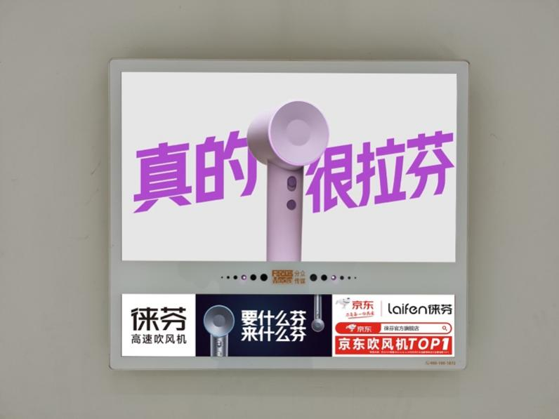 颠覆消费者对高速吹风机想象的同时,徕芬进一步打开销售格局,别出心裁地打造谐音梗广告,在线下分众电梯媒体刷屏,打响品牌营销进阶战,展现出品牌做“高速吹风机普及者”的决心。