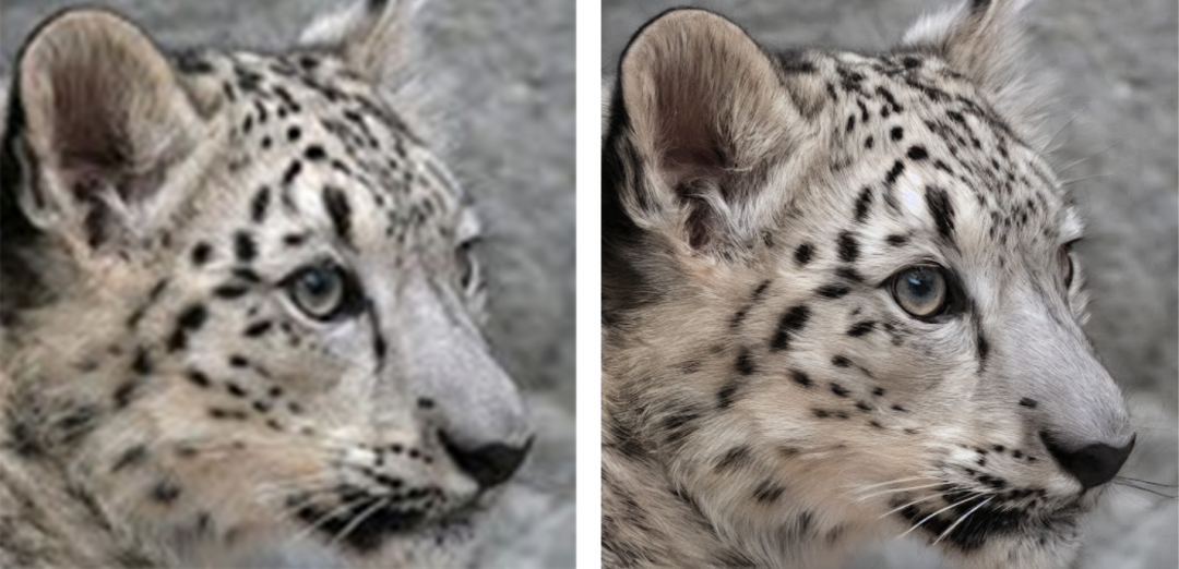 左:128x128 低分辨率图像。右:由 Upscaler 生成的 512x512 分辨率图像