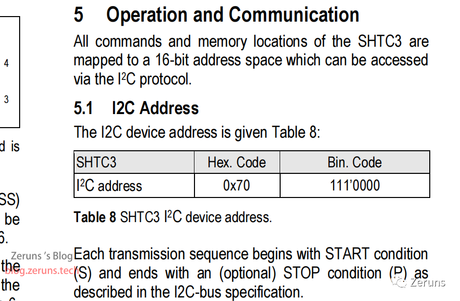 在实际的使用过程中,SHTC3的设备地址需要与读写数据/命令方向位组成一个字节同时发送,字节的最低位为读写数据/命令方向位,高7位是SHTC3的设备地址。