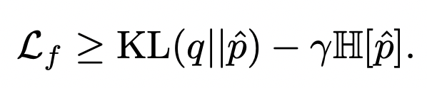 在Calibrating deep neural networks using focal loss(NIPS 2020)中,作者提出直接使用focal loss替代交叉熵损失,就可以起到校准作用。Focal loss是表示学习中的常用函数,对focal loss不了解的同学可以参考之前的文章:表示学习中的7大损失函数梳理。作者对focal loss进行推倒,可以拆解为如下两项,分别是预测分布与真实分布的KL散度,以及预测分布的熵。KL散度和一般的交叉熵作用相同,而第二项在约束模型输出的预测概率值熵尽可能大,其实和temperature scaling的原理类似,都是缓解模型在某个类别上打分太高而带来的过自信问题: