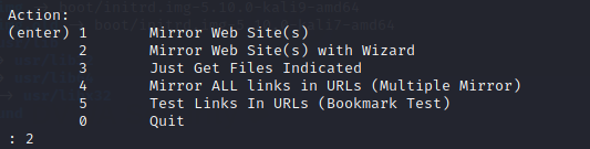 1:直接镜像站点 2:用向导完成镜像 3:只get某种特定的文件 4:镜像在这个url下所有的链接 5:测试在这个url下的链接 0:退出
