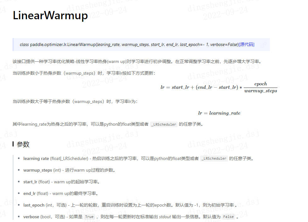 https://www.paddlepaddle.org.cn/documentation/docs/zh/api/paddle/optimizer/lr/LinearWarmup_cn.html#linearwarmup