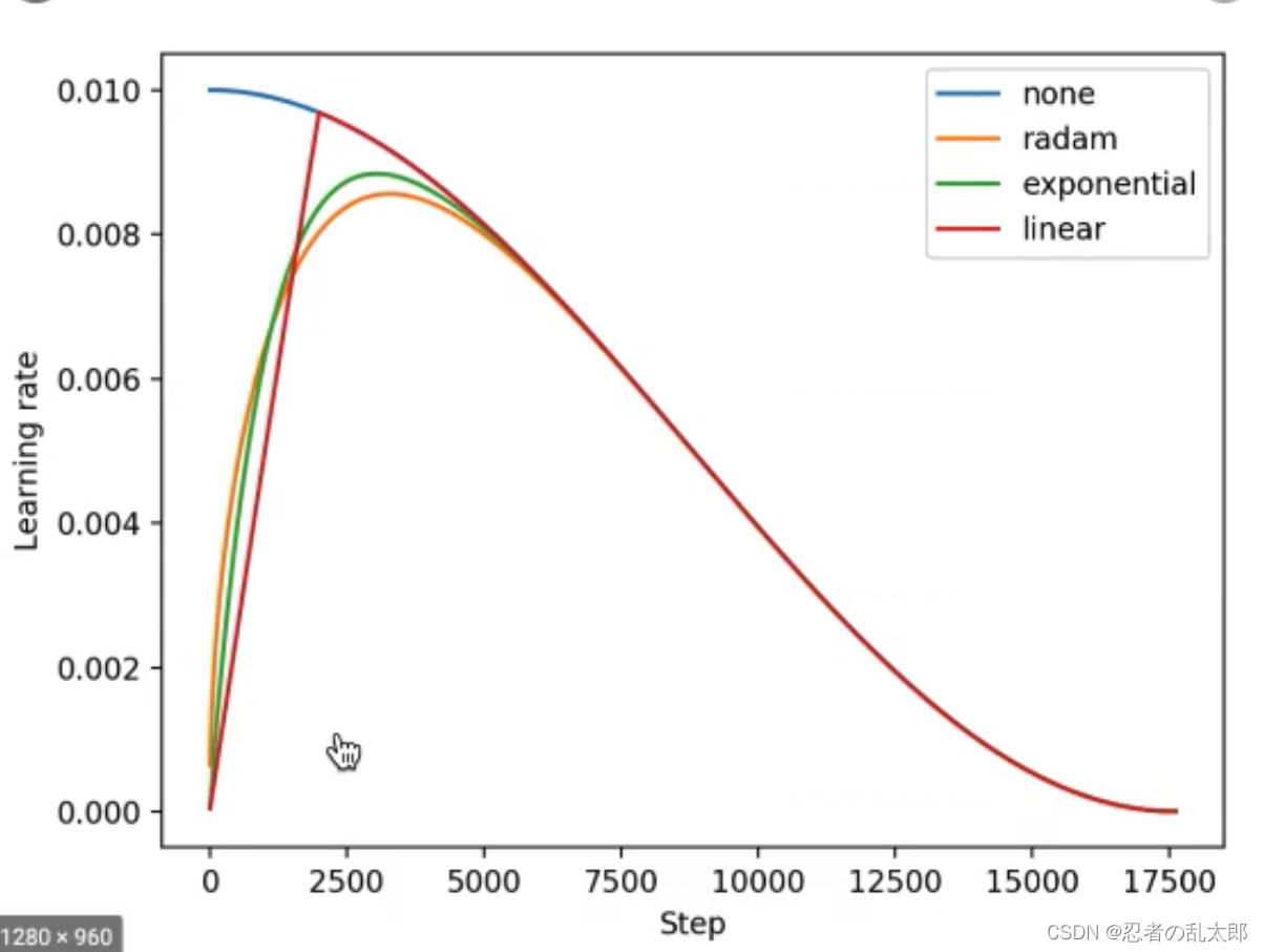 • linear:constant的不足之处在于从一个很小的学习率一下变为比较大的学习率可能会导致训练误差突然增大。linear方式可以避免这种问题,在warmup期间,学习率从 线性增长到 。