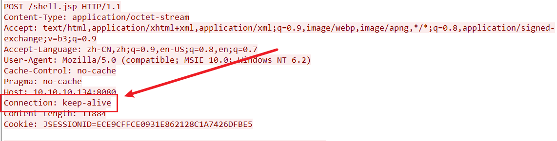 冰蝎通讯默认使用长连接,避免了频繁的握手造成的资源开销。默认情况下,请求头和响应头里会带有 Connection: Keep-Alive