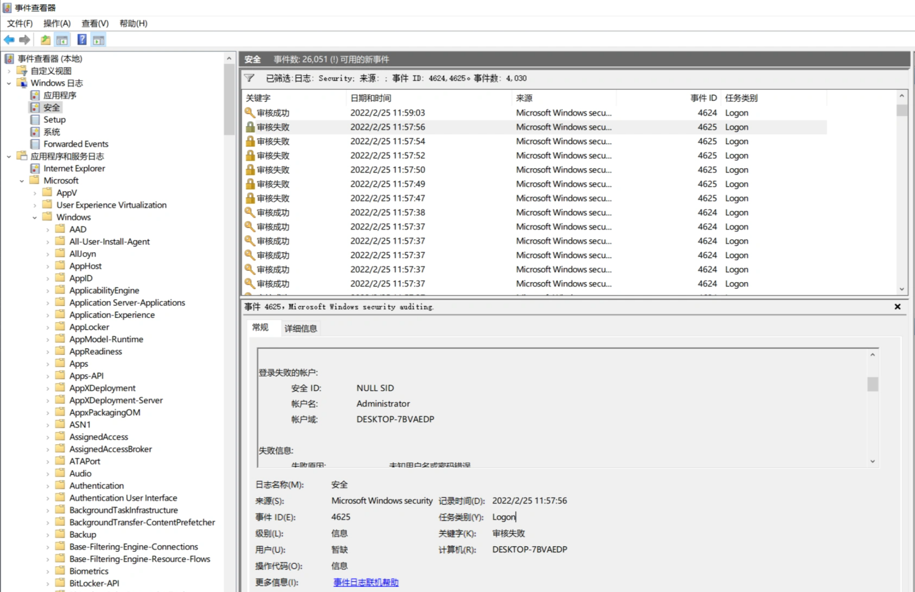 evtxLogparse.exe -r fail security.evtx #RDP登录失败