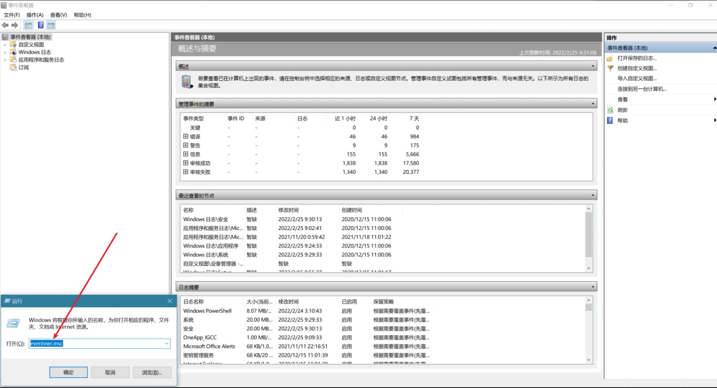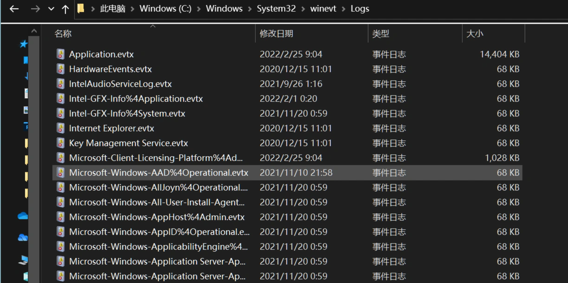 在%SystemRoot%\System32\Winevt\Logs\位置存放着日志文件