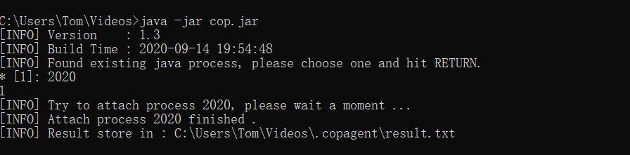 使用cop.jar工具,运行java -jar cop.jar,运行后会在.copagent目录生成结果