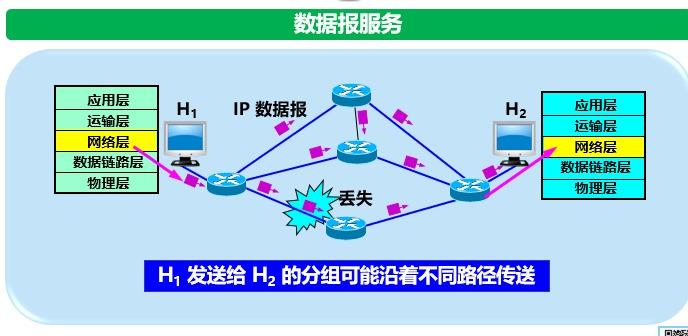 1.2 网络提供数据报服务 网络层向上只提供简单灵活的、无连接的 、尽最大努力交付 的数据报服务