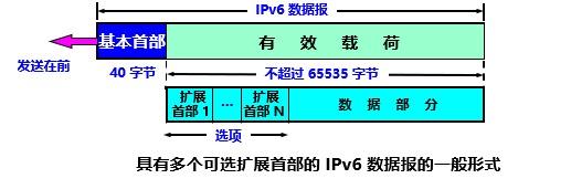 更大的地址空间 扩展的地址层次结构 灵活的首部格式 改进的选项 允许协议继续扩充 **支持即插即用(即自动配置)**。IPv6 不需要使用 DHCP 支持资源的预分配 IPv6 首部改为 8 字节对齐 。IPv4 首部是 4 字节对齐5.1.1 IPv6 数据报的一般形式 IPv6 数据报由两大部分组成。