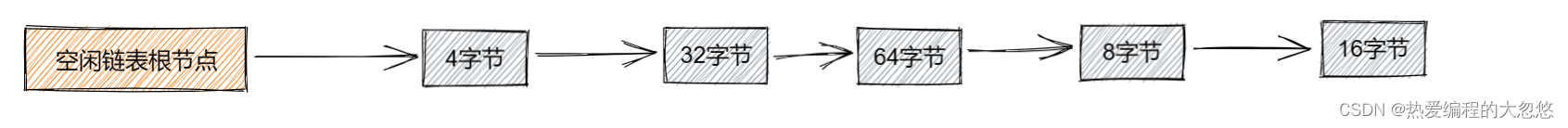 分配的过程还可以再优先,假设空闲链表此刻情况如下: