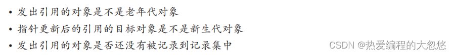为了在老年代对象产生跨代引用的时候,将其加入记忆集中,我们需要拦截所有引用类型字段赋值的过程,类似AOP,会在执行完赋值指令后,判断是否需要更新记忆集,该拦截过程被称为写屏障。