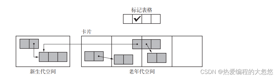 此时,我们只需要用一个固定大小的字节数组就可以通过模糊的形式告诉垃圾回收器哪块卡片内部存在跨代引用,那么由垃圾回收器遍历该卡片内部的对象,找到存在跨代引用的对象,并加入GC ROOTS集合即可。