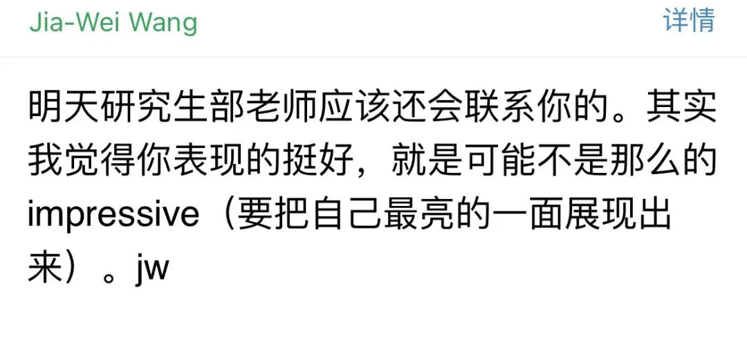 鑫彤结束面试时,已经到了中午12点多,老师们要出去吃饭了,我眼尖一眼看到刚出来的王老师,马上冲了出去给王老师混了个脸熟,称我就是之前给他发邮件的小菜鸡,王老师也因此记住了我。