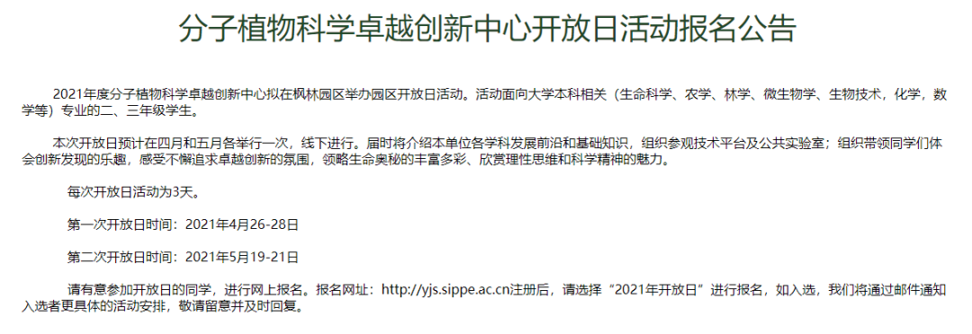 谁知道就在5月底,忠坤giegie去了上海,并拿到了植生所的offer,直接晋升华农保研第一人,羡煞众人。回头一看,居然是开放日!