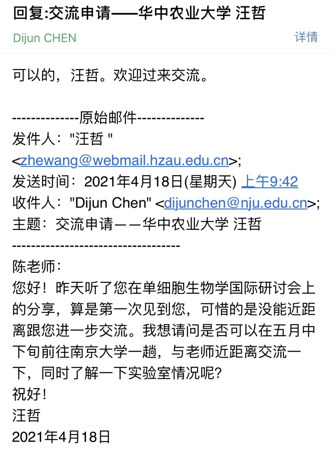 我在鄢老师组“蹭吃蹭喝”的那段时间,时常听鄢老师提及他的好兄弟陈迪俊老师是做生物信息的大佬,本着“没有调查就没有发言权”的原则,我打算去南京大学生科院陈老师的课题组看看,就给陈老师发了邮件。