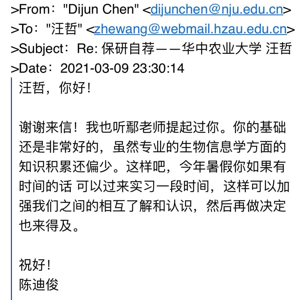 为了有机会成为王老师的学生,我向同在植生所的津易姐咨询,随后立即给王老师发了一封邮件。