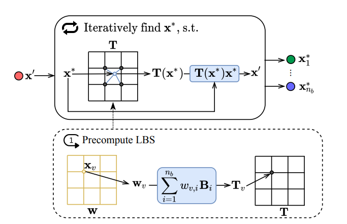 所需的变换。因此,LBS 只需要为一小组网格点,而不是根查找过程中的所有查询点运行。