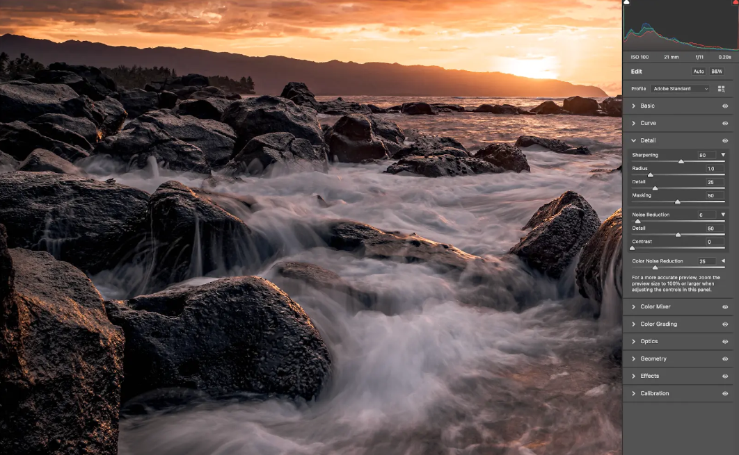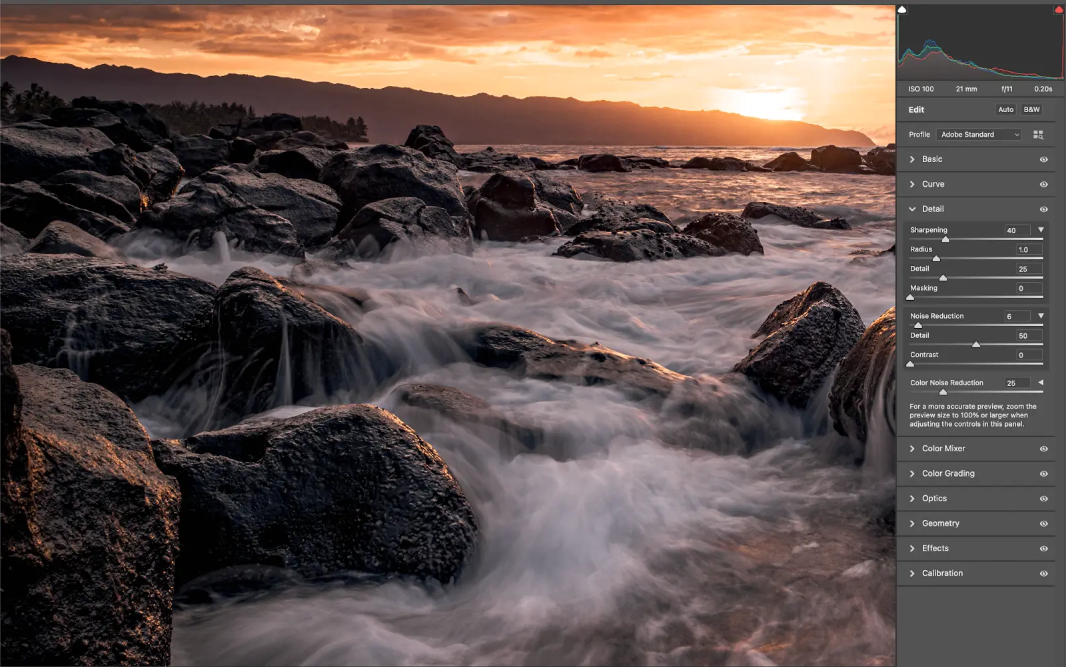 这些调整将为您提供更高质量的文件以导入 Photoshop,并为您提供更高的起点来提高图像的清晰度。