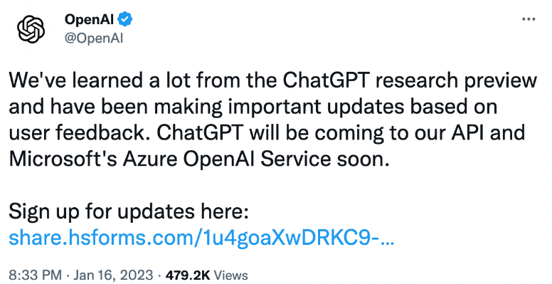 当然,这并不意味着 OpenAI 真的在减速。事实上,该公司已经宣布,“我们从 ChatGPT 的研究预览中学到了很多东西”,ChatGPT 也将很快推出其 API。