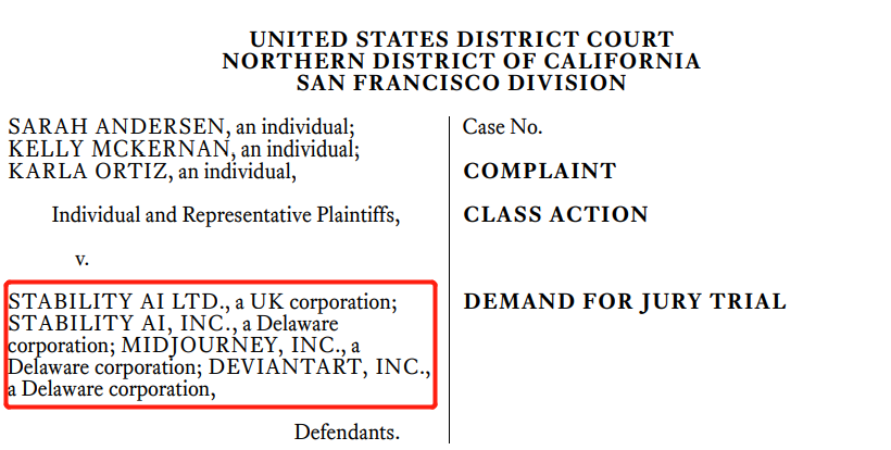 上周五,针对此类侵权的第一起集体诉讼开始,被告除了 Stability AI,还有 MidJourney——以及在线艺术社区 DeviantArt 。