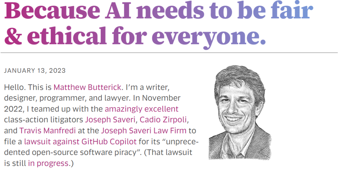 近期,三位艺术家通过 Joseph Saveri 律师事务所和律师兼设计师/程序员 Matthew Butterick 发起了集体诉讼。
