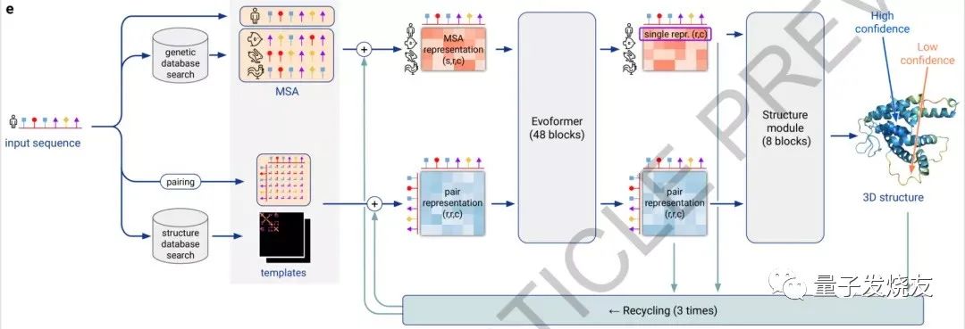 具体来看,AlphaFold2主要利用多序列比对(MSA)把蛋白质的结构和生物信息整合到了深度学习算法中。主要包括两个部分:神经网络EvoFormer和结构模块(Structuremodule)。