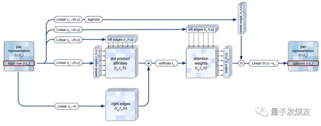 AlphaFold2的研究人员利用卷积神经网络Attention机制构建出一个特殊的“三重自注意力机制”来处理计算氨基酸之间的关系图,他们会将得到的信息与多序列比对结合。多序列比对主要是使相同的残基位点位于同一列,暴露出不同序列之间的相似部分,从而推断出不同蛋白质在结构和功能上的相似关系。操作方式如下图: