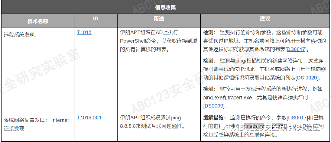 如下所示,伊朗APT组织通过执行ping 8.8.8.8等命令收集内网信息,通过PowerShell命令收集内网域环境信息,为下一步“横向移动”做准备。