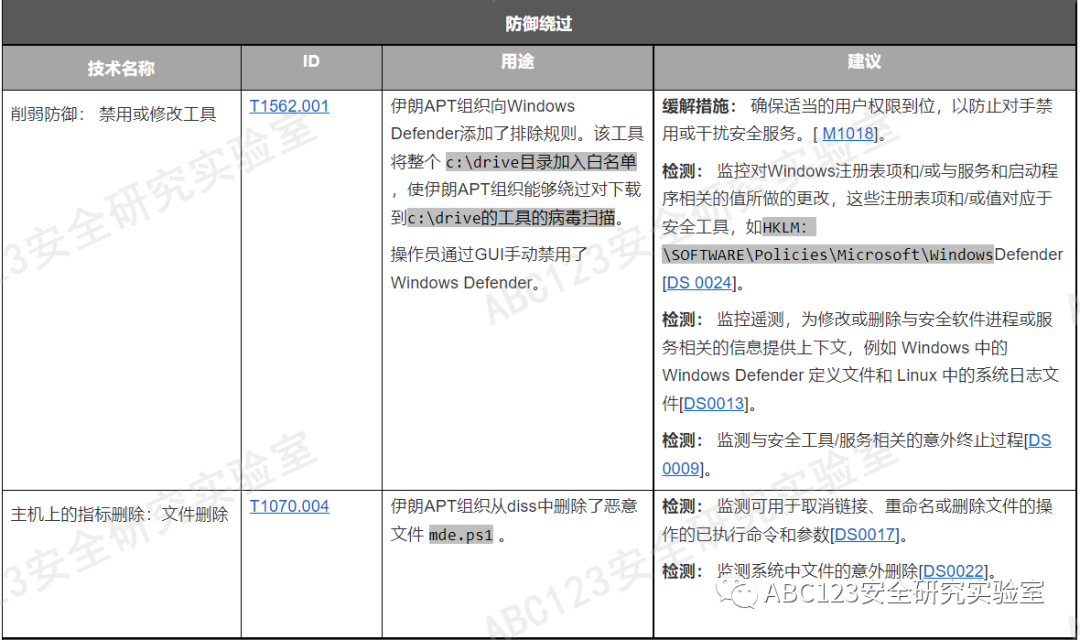 如下所示,伊朗APT组织通过向Windows Defender添加排除规则解决杀软及防护软件问题,并且及时删除了Powershell脚本,防止后期触发杀软。