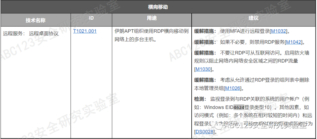 如下所示,伊朗APT组织主要使用RDP登录结合前面获取到的凭据实现“横向移动”战术,获取更多内网权限。