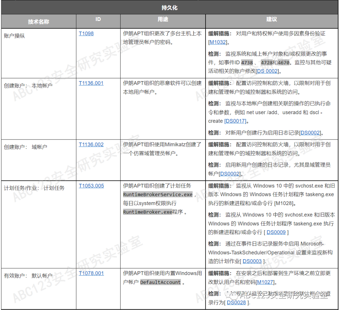 如下所示,伊朗APT组织通过更改管理员密码、添加本地账户、添加仿冒域管理员账户、计划任务、启用默认账号等手段,持久化控制内网权限。