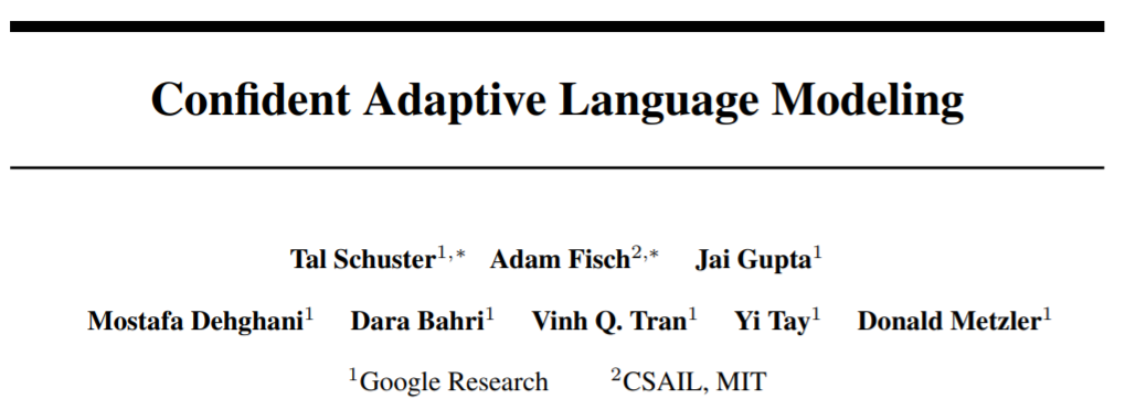 CALM(Confident Adaptive Language Modeling)为基于 Transformer 的文本生成器(如 T5)引入了受控的早期退出(early-exit)功能。
