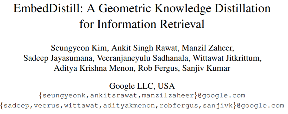 除此之外,谷歌还研究了从交叉编码器 (dual-encoder, 例如 BERT) 到因子双编码器(dual-encoder)的新方法,这也是对(query, document)对的相关性进行评分的重要设置。研究人员探讨了交叉编码器和双编码器之间性能差距的原因,注意到这可能是泛化的结果,而不是双编码器的容量限制。精馏损失函数的精心构造可以缓解这种情况,并减少交叉编码器和双编码器性能之间的差距。随后,在 embedtitil 中,研究通过匹配教师模型中的嵌入来进一步改进双编码器蒸馏。这种策略也可以用于从大到小的双编码器模型中提取信息,其中继承和冻结教师的文档嵌入可以证明是非常有效的。