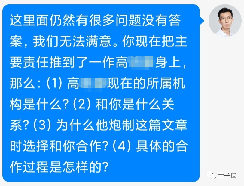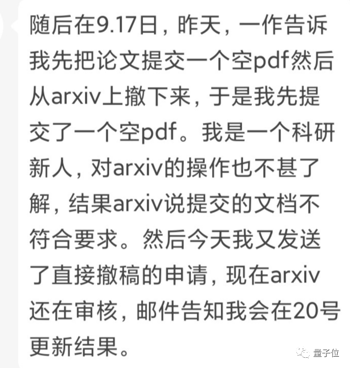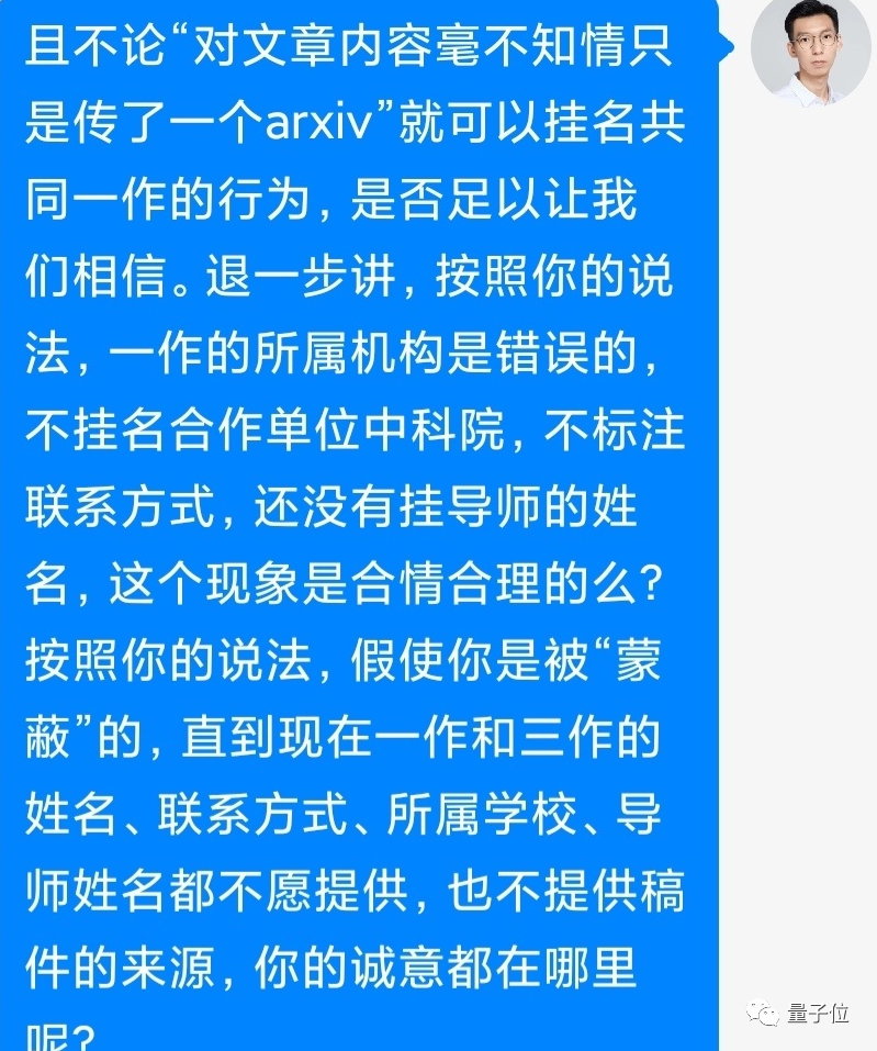 随后,无机构挂名的一作也联系了原作者,但依然坚持“上传错误”的说法。