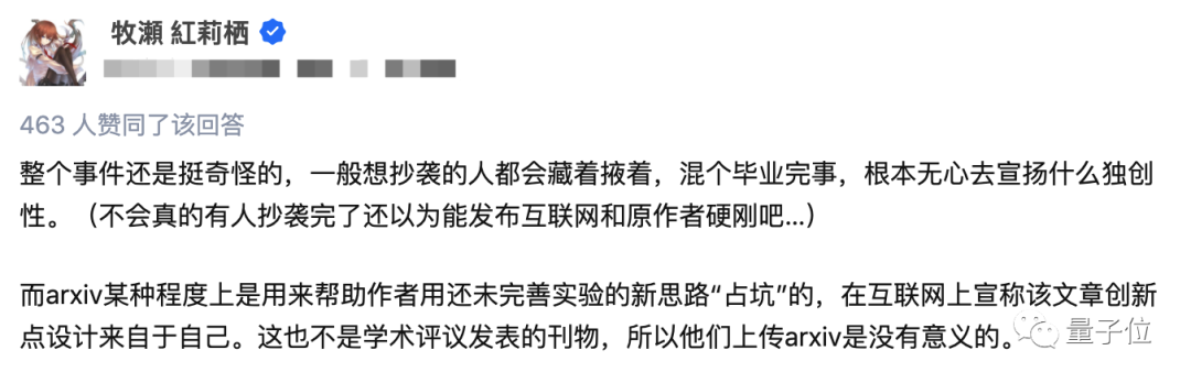 但作为共同一作,又是知名985硕士,对文章内容全系抄袭而一无所知,且声称对科研相关流程不熟悉,怎么也说不过去,在原作者看来属于企图蒙混过关行为。