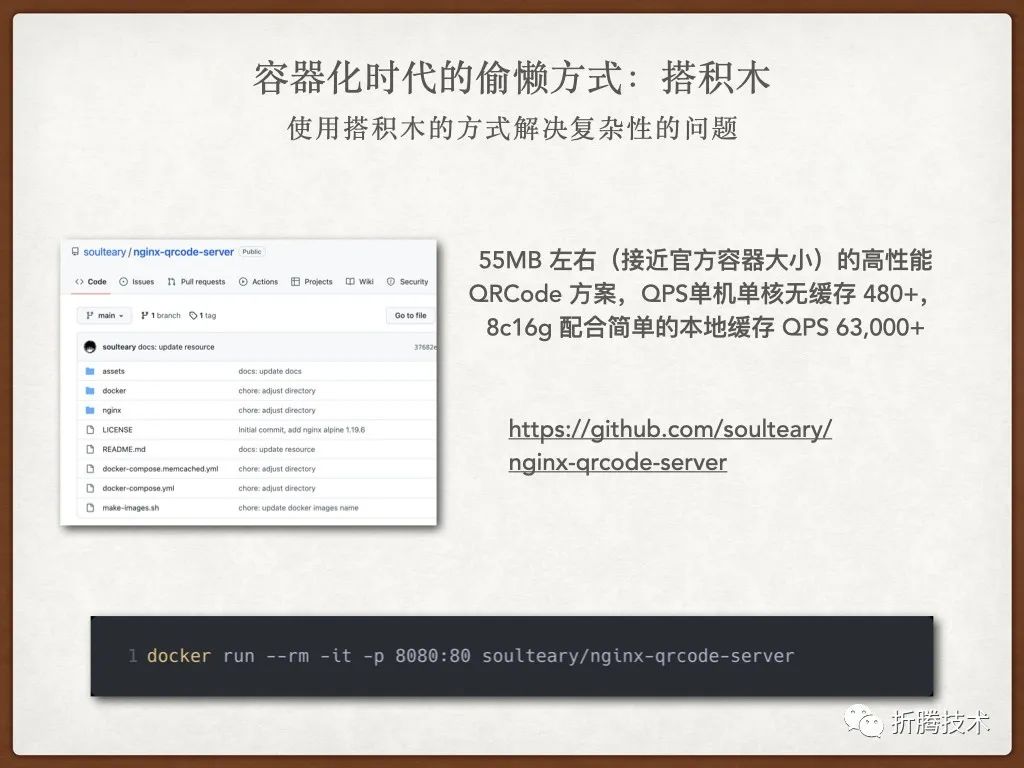 本篇内容,将会更侧重“白盒化”、“容器和 Nginx 的模块组合”部分。完整的项目代码,我也已经上传至 GitHub:soulteary/nginx-qrcode-server[7],有需要可以自取。