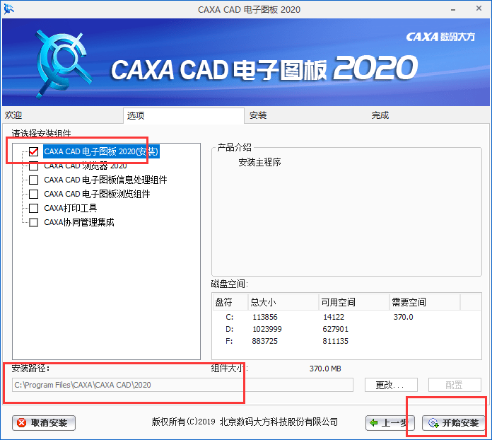 4、将安装组件勾选中,安装路径的话可以更改到更大内存的盘去。然后点击安装~