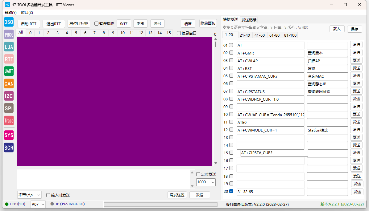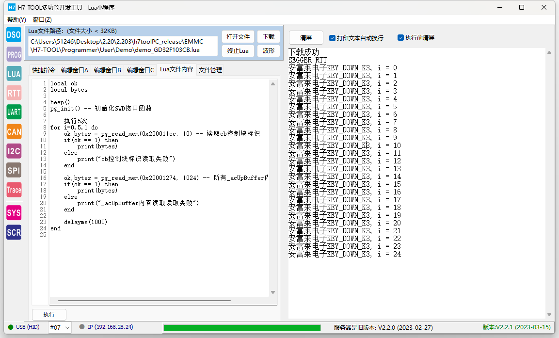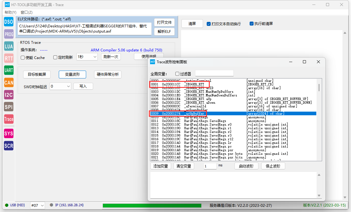 (2)H7-TOOL的RTT功能搜索不到目标板的RAM空间时,可以使用LUA小程序检索是否存在