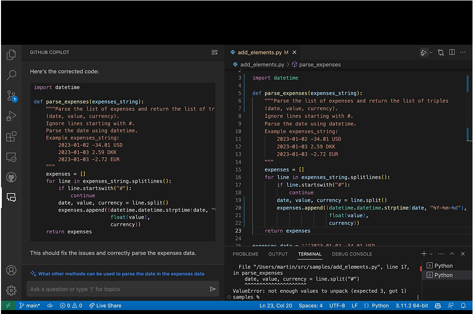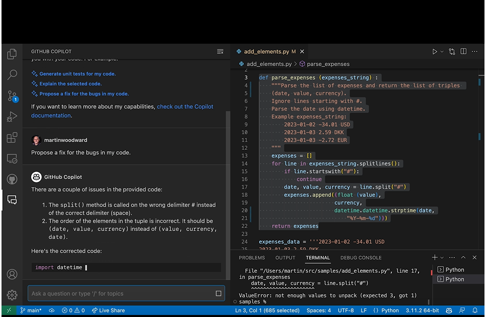 4、Github升级版人工智能编程助手Copilot X,有GPT-4加持,提供沉浸式类似ChatGPT的聊天编程体验,实现轻松代码编程