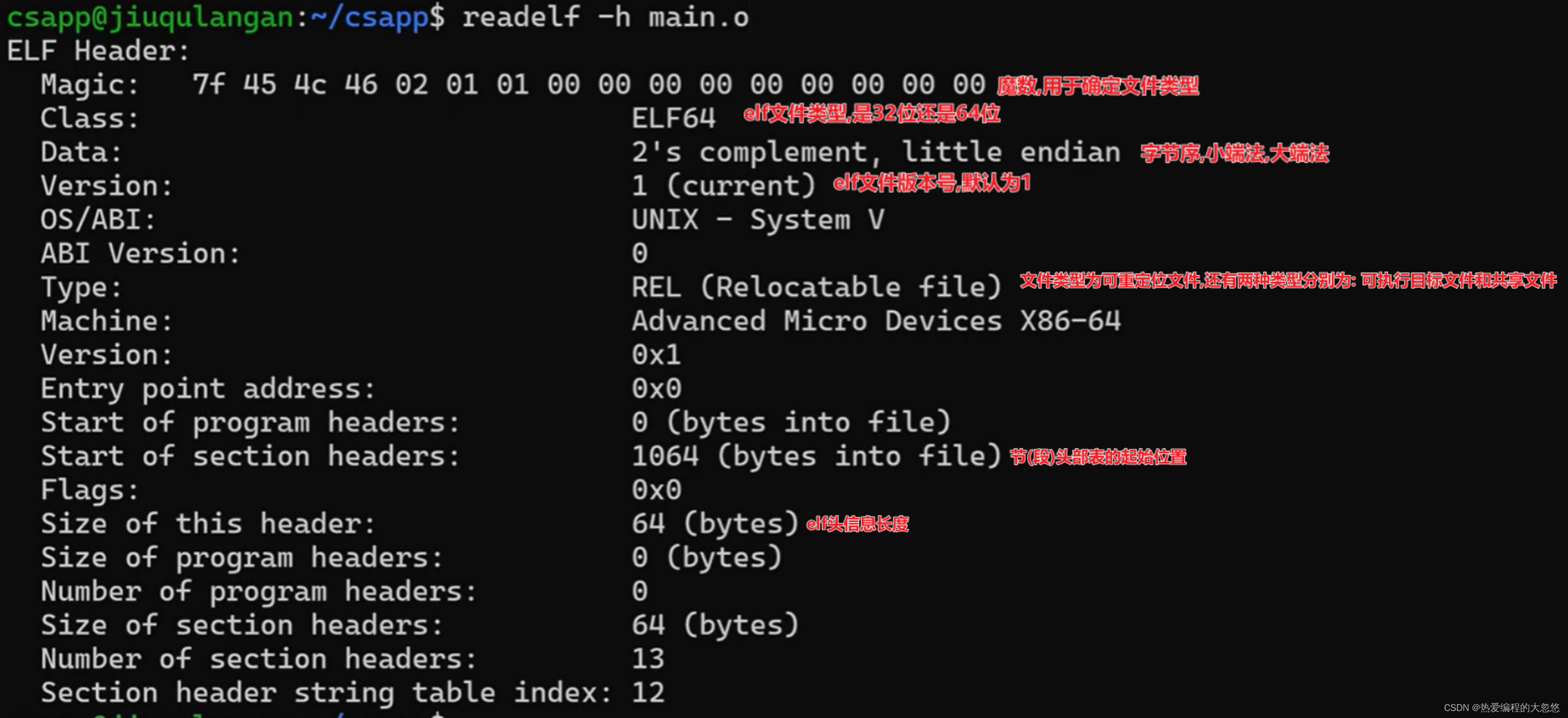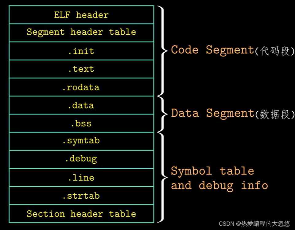 详情参考csapp 478-482ELF可执行文件格式如下: