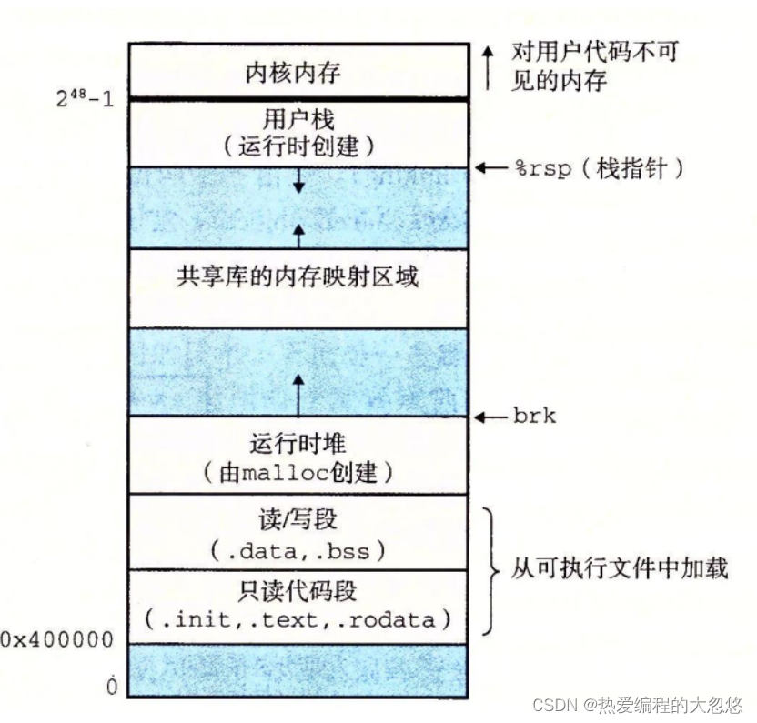 任何 Linux 程序都可以通过调用 execve 函数来调用加载器。加载器将可执行目标文件中的代码和数据从磁盘复制到内存中,然后通过跳转到程序的第一条指令或入口点来运行该程序。这个将程序复制到内存并运行的过程叫做加载。
