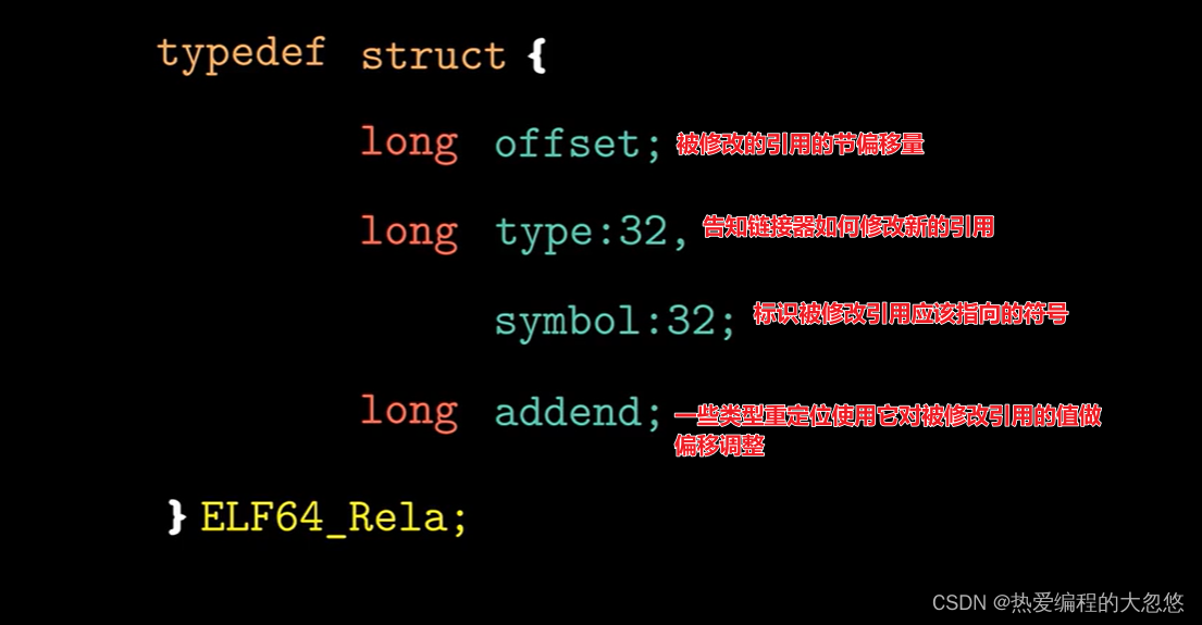 代码的重定位条目放在 .rel.text 中。已初始化数据的重定位条目放在 .rel.data 中。