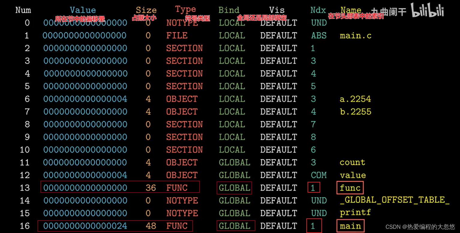 13: c3 ret是否注意到call指令的操作数是fc ff ff ff,翻译成16进制数是0xfffffffc(x86架构是小端的字节序),看成有符号是-4。这里应该存放printf函数的地址,但由于编译阶段无法知道printf函数的地址,所以预先放一个-4在这里,然后用重定位项来描述:这个地址在链接时要修正,它的修正值是根据printf地址(更确切的叫法应该是符号,链接器眼中只有符号,没有所谓的函数和变量)来修正,它的修正方式按相对引用方式。