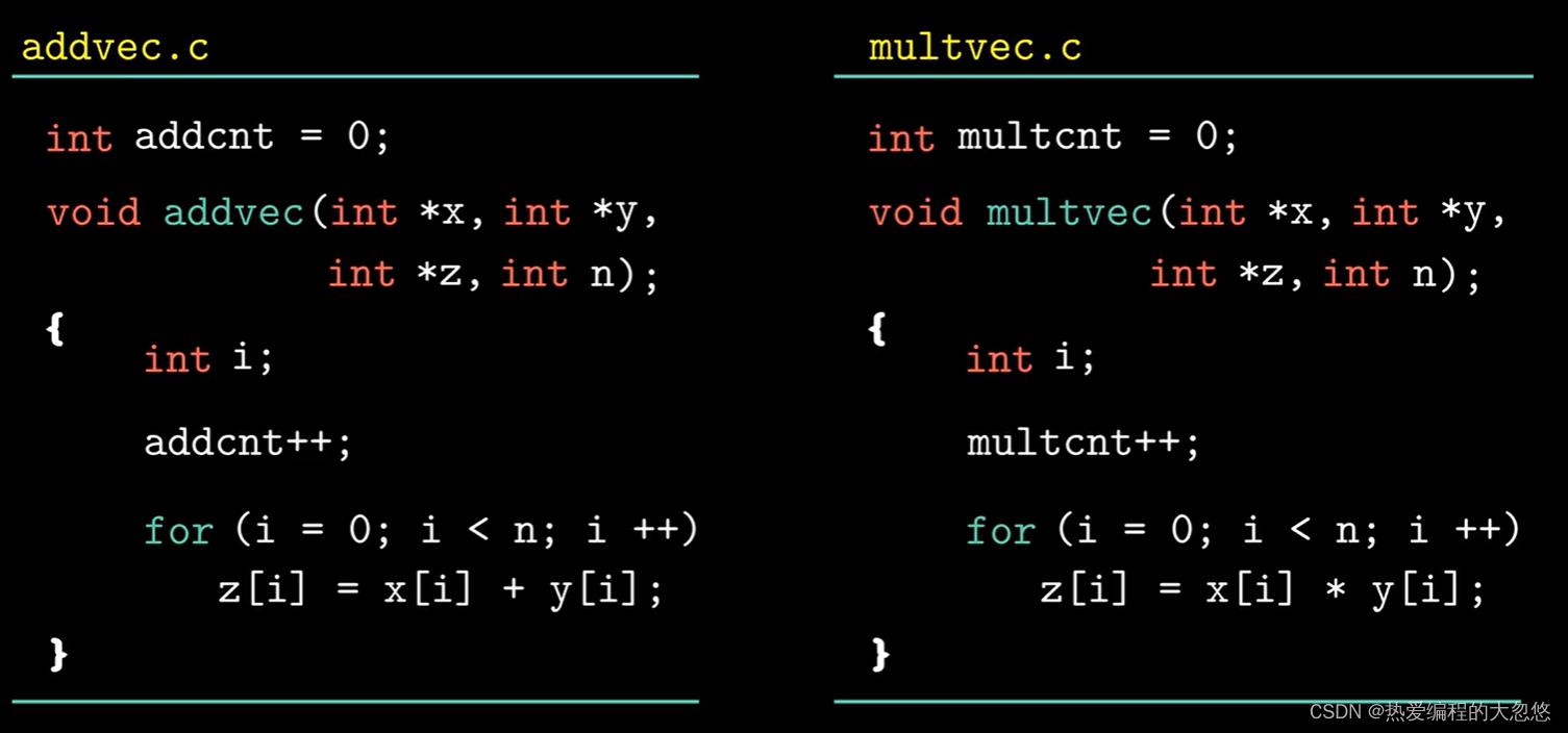 链接器运行时,它判定main.o引用了addvec.o定义的addvec符号,所以复制addvec.o到可执行文件。因为程序不引用任何由multvec.o定义的符号,所以链接器不会复制整个模块到可执行文件。链接器还会复制libc.a中的printf.o模块,以及许多C运行时系统中的模块。
